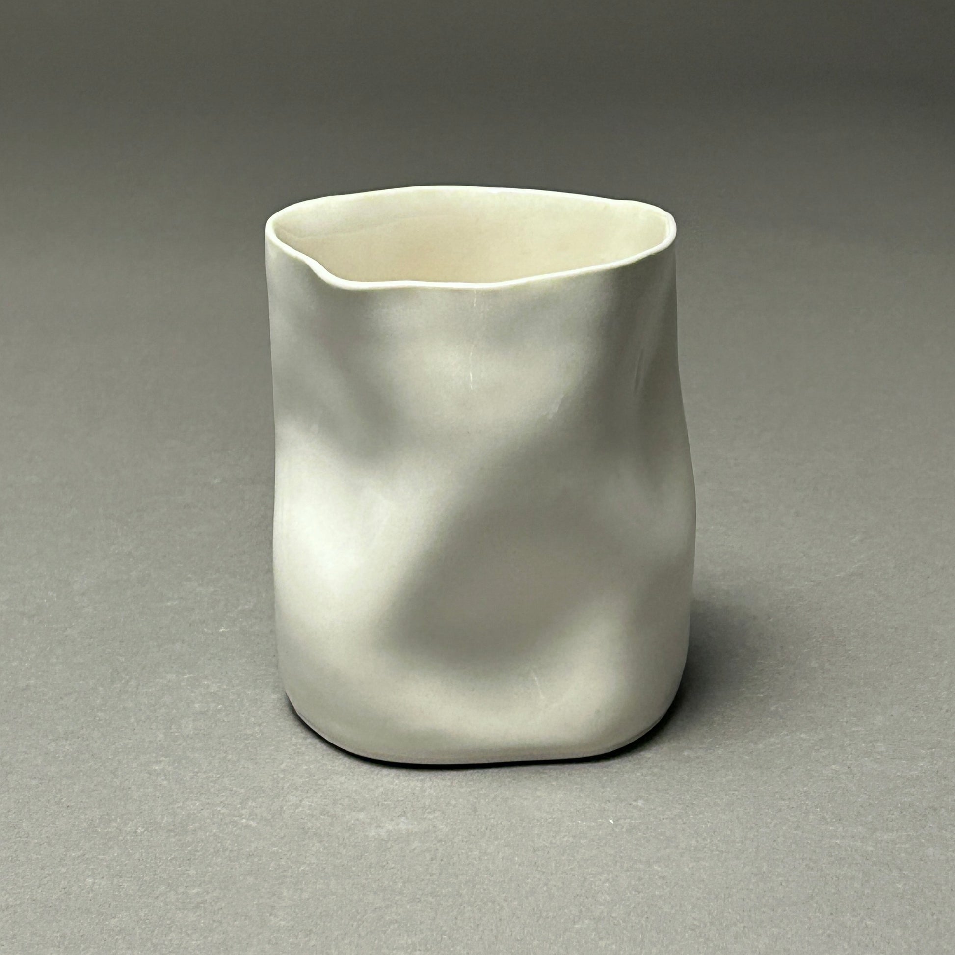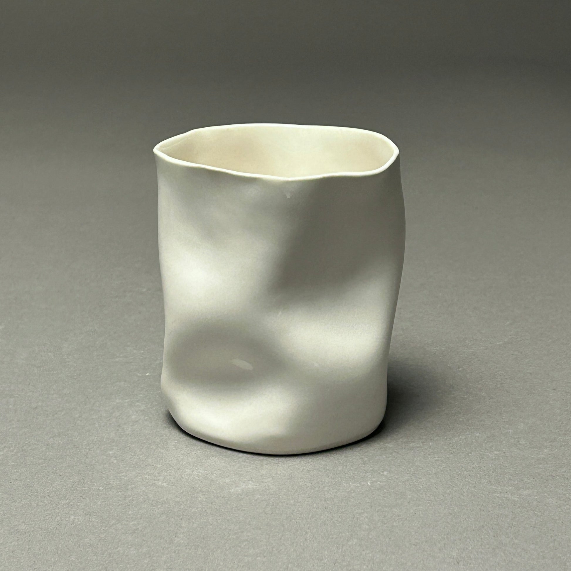 Indulge in a unique dining experience with our wavy white porcelain cup. Perfect for sipping wine or serving veggie or bread sticks, its distinct design adds a touch of elegance to any occasion. Elevate your next gathering with this versatile and stylish cup.